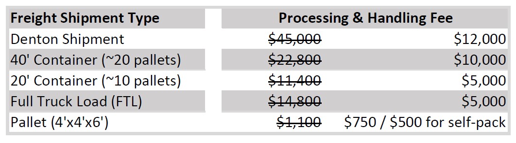 No payment is due at the time of application. A 50% non-refundable deposit is due prior to packing list assembly with remaining fees due prior to shipment. Shipping costs are in addition to the processing and handling fee.